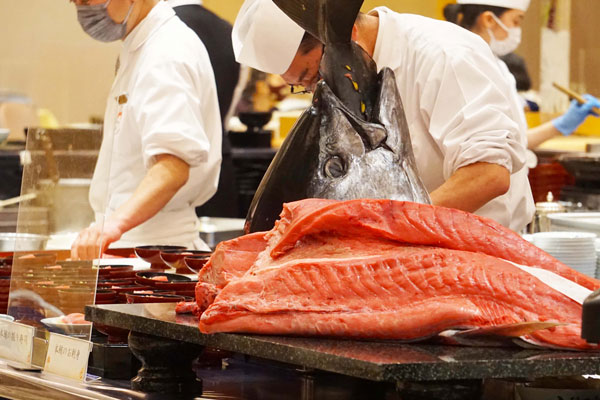 カナダ東海岸産の“King of Seafoods” とも称される最上級のオマール海老を会場内でカット。