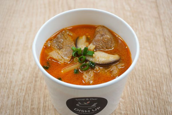 ■牛肉と野菜の旨辛チゲスープ Rサイズ¥600/Sサイズ¥350 |