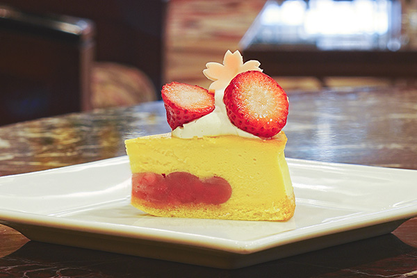 しっとり濃厚なチーズケーキの中には、なめらかでやさしい甘さの桜あん。