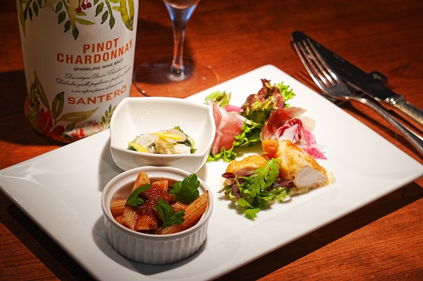トマトソースペンネ/魚介と野菜の和風ジュレ/生ハムサラダ/チキンフリット