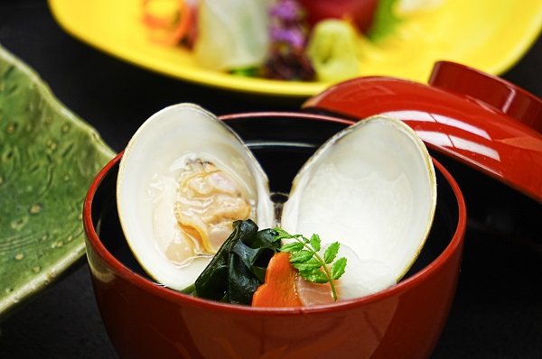 椀 蛤潮仕立て 梅人参 大根 三陸産若芽 木の芽