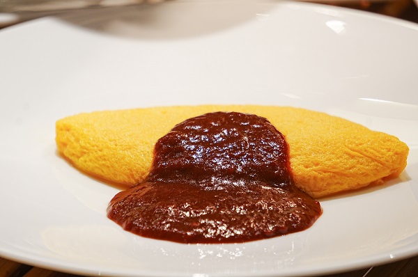 シェフ特製ソースで味わう「もみじ卵のオムレツ」
