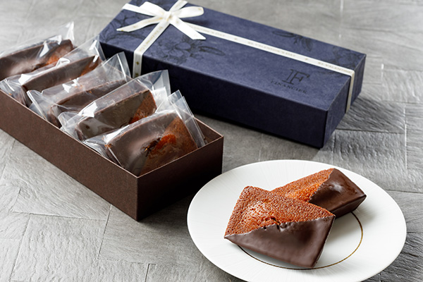 ふっくら、しっとりと焼き上げた濃密な味わいのフィナンシェ。ココア生地のやさしい甘みにチョコレートのコーティングを施し、大人からお子様まで楽しめる一品に。