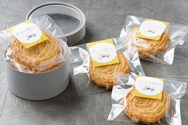 ヘーゼルナッツプードル入りのサクッとした食感のサブレに、ジャンドゥーヤ(ヘーゼルナッツ)のチョコレートをサンドした、ヘーゼルナッツの香ばしさが際立つ上品な味わいのサブレ。